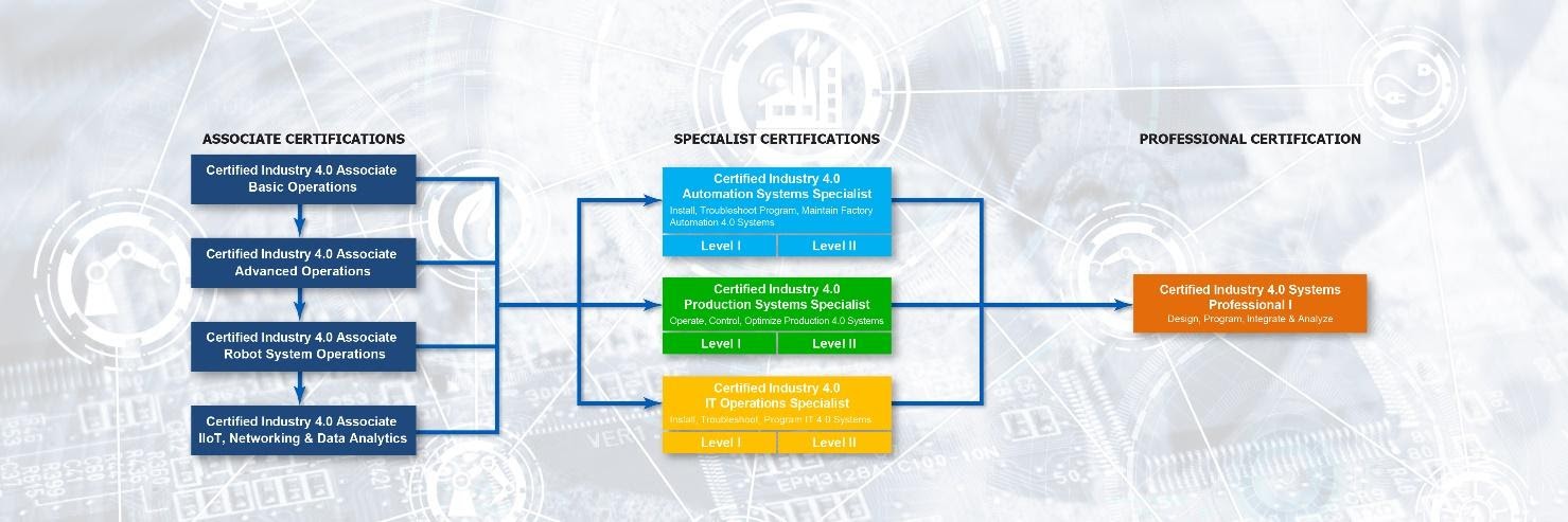 The Smart Automation Certification Alliance (SACA) Specialist certifications certify Industry 4.0 technical skills in troubleshooting, programming, maintaining, and integrating systems. Three strands are offered to match with key skilled occupations. Each specialist strand includes two levels, I and II: Certified Industry 4.0 Automation Systems Specialist, Certified Industry 4.0 Production Systems Specialist, and Certified Industry 4.0 IT Operations Specialist.
